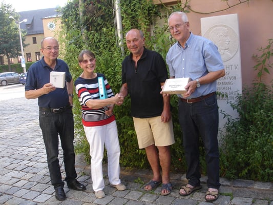 Die beiden Vorsitzenden, Brigitte Schwarz und Michael Gsaenger, sowie die Beiräte Georg Vogel und Gaston Richter, bedankten sich sehr herzlich bei Herrn Fiegl und versprachen, die Sammlung im Haus der Geschichte zu bewahren und in Ehren zu halten."