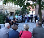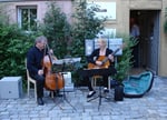 Georgensgmünd (HK) - Heim nach Gmünd hat der Heimatverein Werke des vor eineinhalb Jahren verstorbenen Künstlers Reinhart Fuchs geholt, der Mitglied im Heimatverein war. Es ist das Verdienst des Vorsitzenden Karl Hirschmann und seiner Frau Ursula, dass im Schlösschen und im Büchereistadl gleich gegenüber mehr als 60 Kunstwerke des freischaffenden Künstlers aus dem Ortsteil Untersteinbach sein Lebenswerk illustrieren. Geschaffen habe er mehr als 800, davon fast 700 für Kirchen und Friedhöfe, informierte Karl Hirschmann bei der Eröffnungsfeier am Platz vor dem Schlösslein. Umrahmt wurde sie mit von seinem Freund Rainer Bartke auf dem Cello und Barbara Hölzer auf der Gitarre dargebotener Musik. Da die beiden Profimusiker bereits spielten, als die Besucher noch eintrafen, schaffte dies von vorneherein eine positive, feierliche Stimmung.