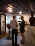 Bürgermeisterin Eva Loch freute sich, unter den etwa 100 Besuchern die Kinder von Reinhart Fuchs begrüßen zu können und auch dessen Bruder, der 2009 das jüngste ausgestellte Werk, das Lesepult aus Ebersdorf bei Coburg, fertig stellte, das Reinhart Fuchs entwarf, aber nicht mehr daran arbeiten konnte. Sie fühle sich immer an daheim erinnert, wenn sie irgendwo ein Fuchs-Kunstwerk finde. Dem Ehepaar Hirschmann dankte sie für deren überaus großes Engagement für diese Kirchweih-Ausstellung und wies auf auf das neue Heft der Zeitschrift „Kunst und Kirche“ hin, in dem Gmünds Pfarrer Johannes Arendt Reinhart Fuchs und sein Werk ausführlich vorstellt. Erhältlich ist es über das Evangelisch-Lutherische Pfarramt.
