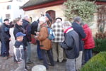 Diesmal war für die fast 50 Teilnehmer das Nachbardorf Wasserzell das Ziel, das über den Judenweg mit einem Schwenk über den Wiesengrund und durch das Sandabbaugebiet erwandert wurde. Falk Trillitzsch hat allen Wanderern interessante Details für Möglichkeiten der Renaturierung der Industriebrachen und späterer wirtschaftlicher oder touristischer Nutzung vor Augen geführt. Herr Vinzenz Pfahler musste deshalb auf die Wanderer etwas warten, freute sich jedoch über das große Interesse, als er „seine“ Stephanskirche erklärte. Ein echtes Kleinod in unserer Nähe! Im Gasthaus „Zum Rezatgrund“ konnte sich dann die frohe Schar mit fränkischer Kost für den Rückweg stärken.